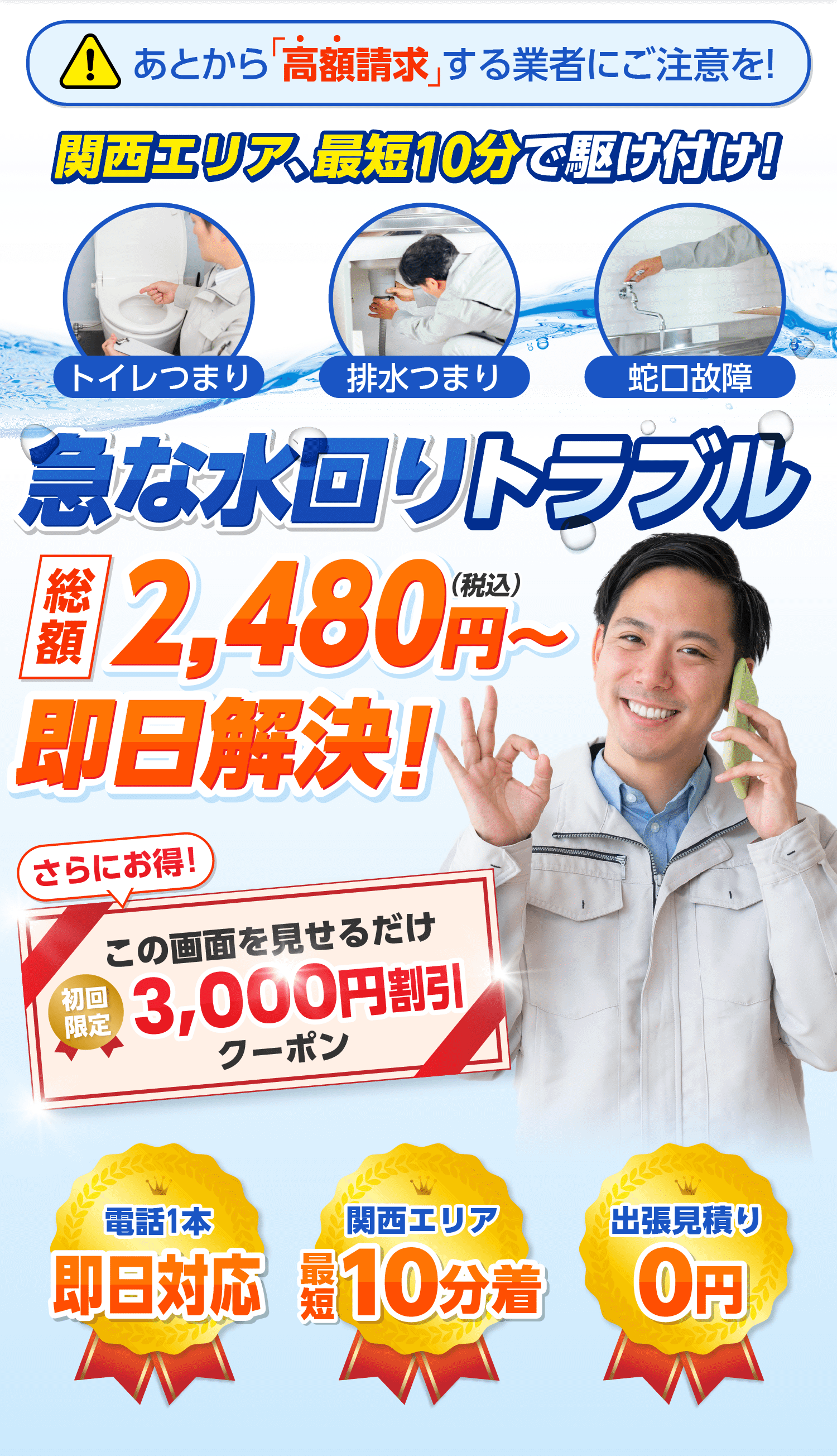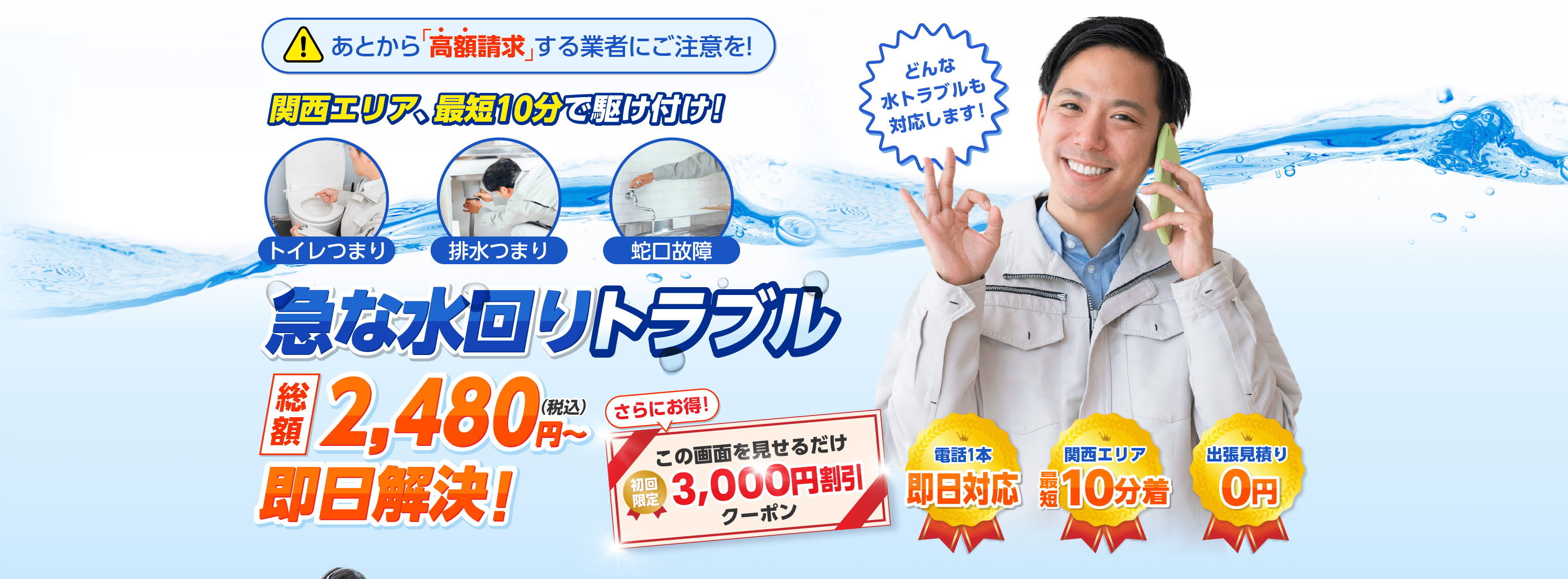 関西エリアの水トラブルに迅速に対応させていただきます。きめ細かいアフターサポートでリピーターの方にもご満足いただいております。