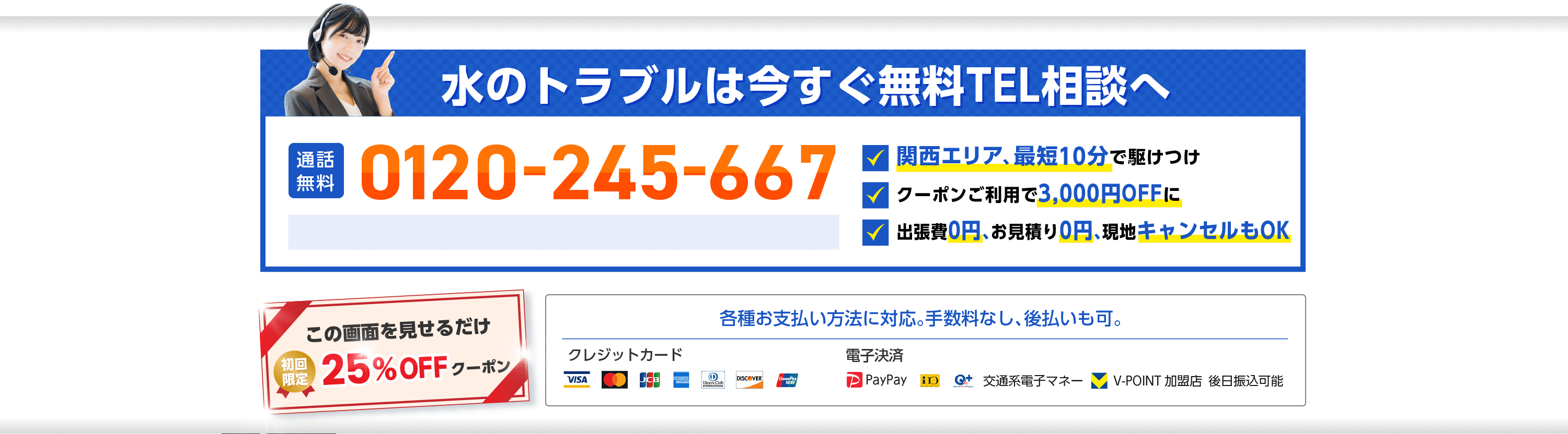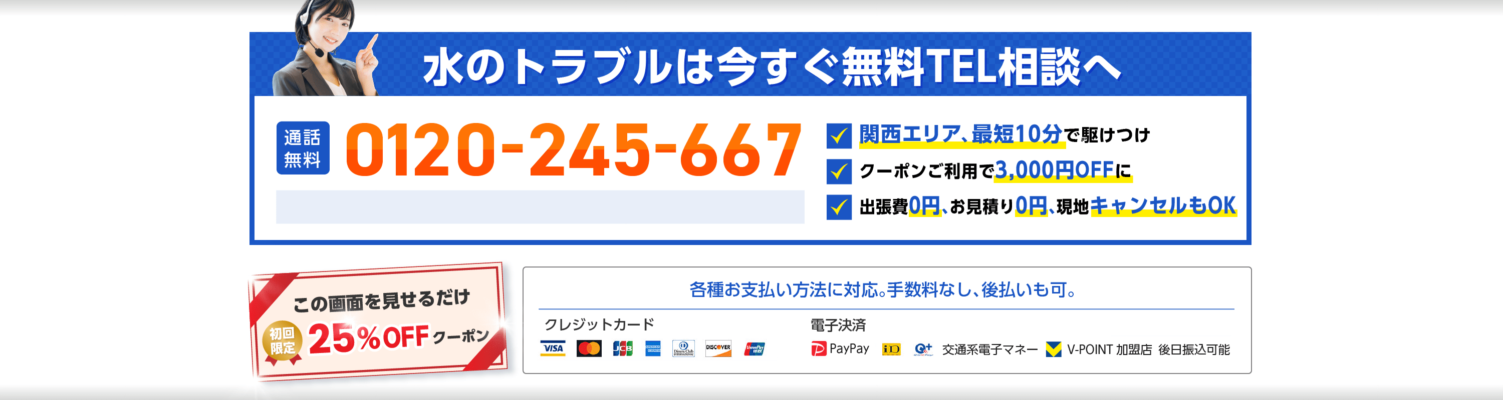 水トラブルが完全に解決したことをご確認いただき、清掃終了後にお支払いとなります。